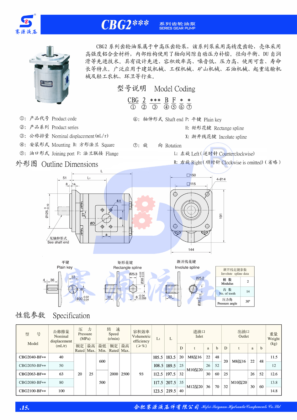 产品安装、使用注意事项 一、工作介质 1、推荐夏季选用L-HM46或相近粘度的液压油,冬季选用L-HM32或相近粘度的液压油。 2、工作油温范围-20—80。 3、系统清洁度直接影响液压元件的可靠性,加油前,油箱、管路应充分清洗, 一般泵吸入侧常用过滤精度100目的滤 油器(其额定通流量应不小于泵流量的两倍),回油管路接过滤精度不低于25um的滤油器。 二、齿轮油泵 1、油泵启动前应仔细检查进出油口、旋转方向是否与标牌指示方向一致,切勿逆向旋转。 2、泵传动轴与原动机输出轴之间应采用挠性联轴节联接,其不同轴度不大于0.1mm。 3、应保证泵轴不承受径向力、轴向力和弯矩。安装齿轮泵时,轴应缓慢导入,切勿强行敲打,轴向碰撞,否则将对泵 造成严重损坏。 4、泵的吸油高度不大于0.5m。 5、进油口连接法兰处严禁磕碰。结合面、接头必须严格密封,以防漏气,否则会引起噪声、振动、产生泡沫等异常现 象,降低齿轮泵寿命。 6、齿轮泵吸油管的通径应保证油的流速小于1.5m/s。 |